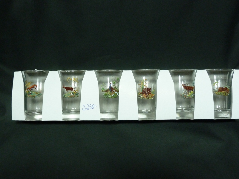 Hat darabos röviditalos pohárkészlet vadász motívumokkal, ideális ajándék vadászoknak.
